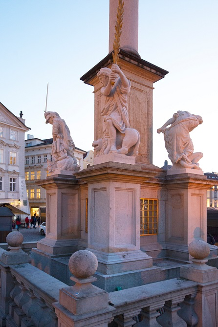 Sloup byl prvním barokním pískovcovým dílem svého druhu, oltářem pod širým nebem, časoměrnou osou města i duchovní pečetí uprostřed Evropy. Na jeho vrcholku nestojí zbraň ani panovník, ale dívka s jemnou tváří, která drtí draka pod svýma nohama – tichý obraz vítězství světla nad tmou, života nad chaosem, lásky nad ideologií.